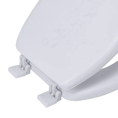 Your toilet will look brand new with the Bath Bliss beveled toilet seat. The 16.5″ toilet seat fits standard round toilets. Comes complete with all hardware for easy installation. Designed with decorative soft vinyl designed for making this seat sure to last. The adjustable non-slip hinges keeps seat in place without slide off toilet bowl. Giving your bathroom a whole new makeover, be sure to replace your toilet seat when its time for an upgrade!