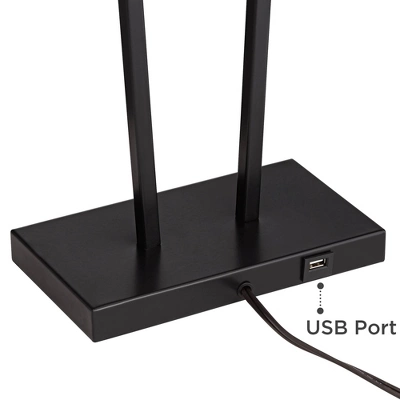 360 Lighting Cole Modern Table Lamps 27″ Tall Set Of 2 Black Metal With USB Charging Ports White Rectangular Shade For Bedroom Living Room Bedside