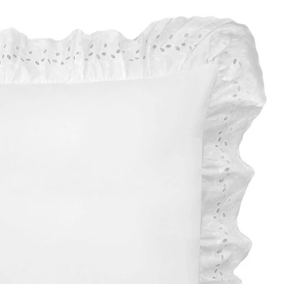 Effortlessly add a touch of pretty, shabby chic charm to your guest room or master suite with the Ruffled Eyelet Bedding Collection. Each pillow sham features an intricate ruffled eyelet embroidered flange in neutral color options to provide just the right amount of subtle feminine style to your living space. Sold as individual sham. Pair with coordinating bed skirt for a complete, cohesive look. Available in ivory, white, gray and mocha. Size options include standard/queen, king and euro to accommodate any size bed. Easy-care fabric is pre-shrunk, wrinkle resistant and machine washable. Imported.