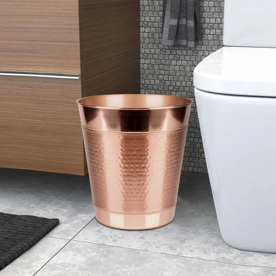 The Trash cans are sized perfectly for smaller space, but still have plenty of room for your recyclables and garbage, made of high-quality durable materials these dustbins will hold up to everyday useThese garbage bins can be used for trash recycling or storing itemsThe beautiful slim round design combined with the Hammered Copper Finish, make them the perfect compliment to any home.