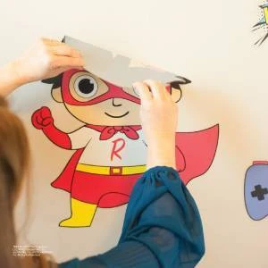 Your child’s favorite YouTuber is jumping off the wall and right into your home! See the heroic Red Titan come to life on your smart phone or tablet using the Decalcomania AR app.Wall Palz is bringing you more than just kids room stickers, Wall Palz is giving your child an interactive experience! Using your phone or tablet, your little super hero can place a life size Ryan on the floor and control his movements with a simple swipe on the screen! Create a Ryan’s World birthday scene and have children pose with Red Titan for photos! The removable wall stickers for kids can be peeled off and reapplied several times.Our Ryan’s World wall decals are easy to apply in 4 simple steps and include 4 accessory wall stickers. The Ryan’s World decals are made of high quality vinyl material that are safe for painted or unpainted surfaces. The decals are easily repositionable and removable without leaving sticky residue.