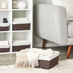 Large Woven Rectangular Storage Basket Gray/White – Brightroom™